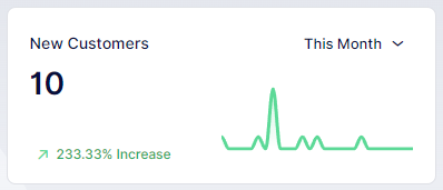 In the “New customers” section, you’ll find the count of new customers who have booked appointments within the selected time frame from the period picker dropdown. Time frames available in the period picker include Current week, Last week, This month, Last month, Last three months, Last six months, Last Twelve Months, and Last Year. You’ll also find a graphical representation illustrating the change in the number of new customers over time.