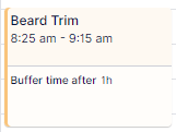 Once an appointment is booked, it will be displayed on the calendar. If the service has buffer times before and/or after, these times will be highlighted with a specific colour and label on the calendar, indicating it as buffer time. This feature is crucial for understanding the actual availability of an employee. Sometimes an appointment might be scheduled for 1 hour, but with buffer time, the employee could be unavailable for a longer period. This ensures you can accurately assess an employee’s availability before and after each appointment. It’s particularly helpful to avoid confusion when attempting to schedule additional appointments during these times.