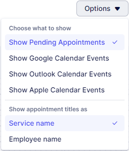 Additionally, you can choose whether your calendar displays the service name or the name of the assigned employee for each appointment. This customization allows you to tailor the calendar view to your preferences.
