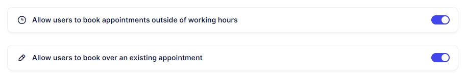 Enabling these options may lead to potential overbooking for your employees. Please be aware that enabling these options is at your own risk, as it may affect the scheduling and availability of your staff.