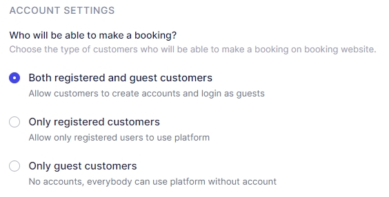 This flexibility ensures that you can tailor the booking experience to your preference, whether you prioritize user registration or prefer to accommodate guest bookings with minimal friction.