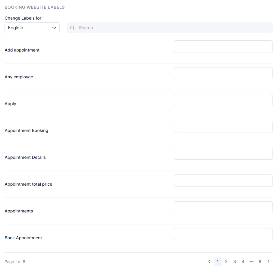 You have the option to customize the labels on your booking form according to your preferences. If you leave these fields blank, the default labels will be used. Currently, there are almost 60 labels available for modification, and we regularly introduce new ones. Feel free to reach out to us if there’s a specific label you need that is not yet available.