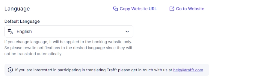 When Multilingual Support is disabled, you can only configure the language on the booking website: