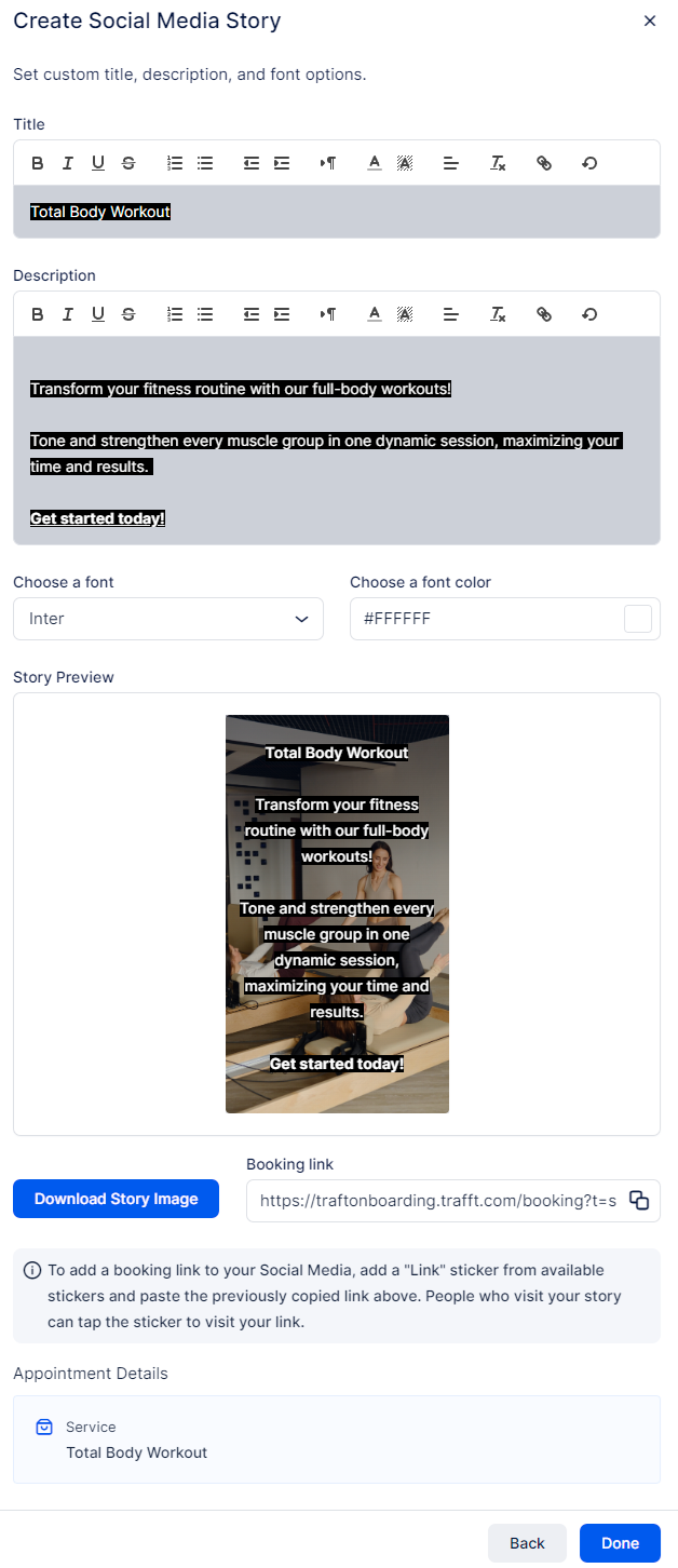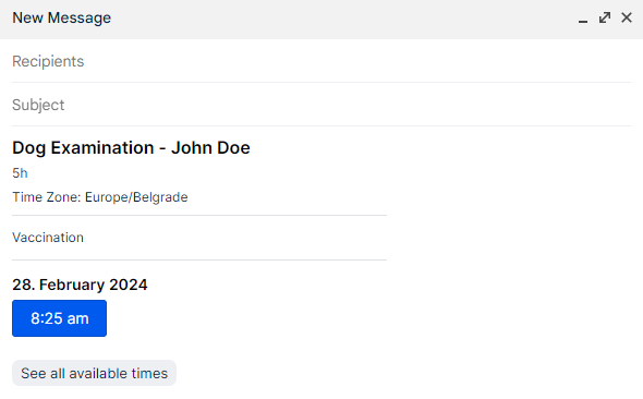 Finally, at the bottom of the modal window, you will see the appointment details that you’re sharing.