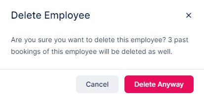 If the employee has future appointments scheduled, you will receive a warning prompt asking for confirmation before deletion. If you proceed with deletion, both the employee and their future appointments will be removed permanently.