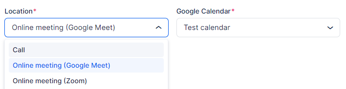 If you configured the Zoom, Microsoft Teams, or Google Meet integration through their respective pages in Features & Integrations and linked your employee with Google/Zoom/Microsoft accounts, these platforms will appear as locations in the employee’s profile.
