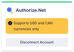 Note: To establish a connection with Authorize.Net, it is essential to configure the currency in Appointr to either USD or CAN. This is necessary as these two currencies are the only supported currencies across all payment profiles in Authorize.Net.