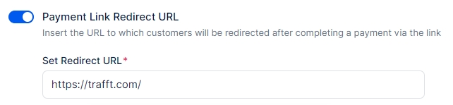 Enable and configure the Payment Link Redirect URL – this option works along with the Payment via Link feature, so if you configured it, the customers will be redirected to the URL defined in here after they pay via link.