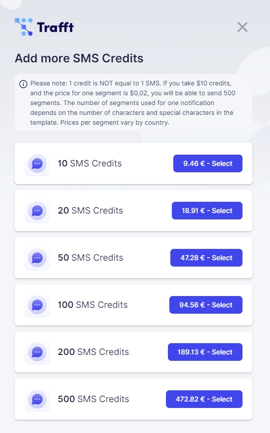 Unlike Email Notifications, SMS messages are not free, so you’ll need to purchase credits to utilize this feature.