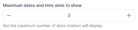 Maximum Dates and Time Slots to Show: This setting dictates the number of timeslot options that will be presented to your customers during the chat.