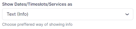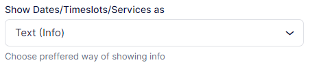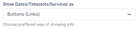 Show Dates/Timeslots/Services As: Here, you can choose the appearance of the proposed timeslots and services. They can be displayed either as “Buttons (Links)” or as “Text (Info)”: