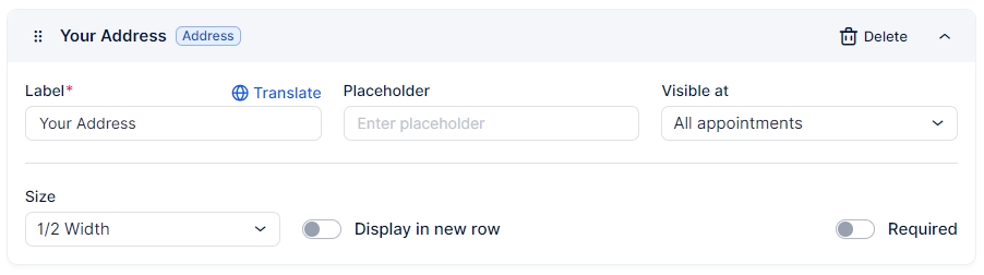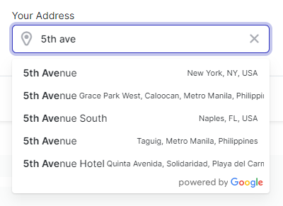 Address – a specialized field that integrates with Google Maps to assist users in inputting addresses accurately. When users start typing an address, the field utilizes Google Maps’ autocomplete feature, providing suggestions in a dropdown menu based on the entered text.