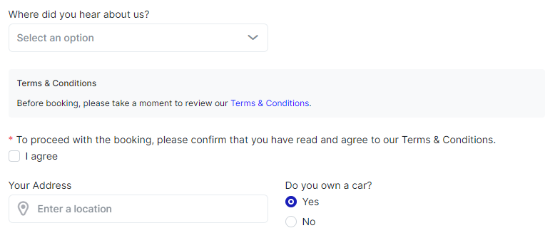 Once you’re done adding the custom fields, they will be shown on the last step of the booking form:
