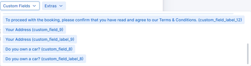 They can be used in notifications sent to your customers. However, it’s important to note that custom fields that are not selected for all services will not be available in the default templates or the Custom Notifications you create for “all services”. If you have specific custom fields that only apply to certain services and you want to include them in the templates, you will need to create templates that are specifically used for those services.