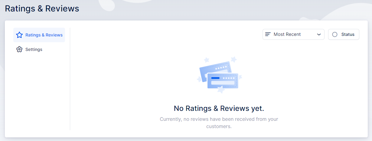 Once enabled, the “Set Up” button will appear and once you click on it, it will take you to the “Ratings & Reviews” section. You’ll see an empty section (since you don’t have any reviews yet), but once you do, you will be able to filter them per “Most Recent”, “Lowest to Highest rating”, or “Highest to Lowest rating”. You’ll also be able to filter them per review status (Approved, Pending, or Rejected).