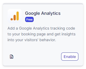 Back in Appointr, navigate to the Features & Integrations section. Locate the “Google Analytics” integration, and with a simple click on the “Enable” button, you can activate it.