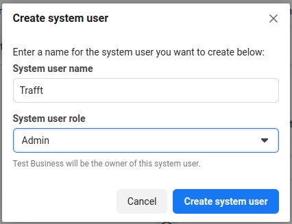 Next, return to the “System Users” section in the left sidebar (agree to Facebook’s Non-discrimination policy if prompted again), and click on the “Generate new token” button: